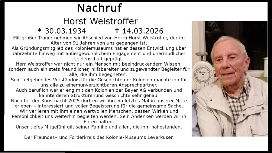 Heute gehören die früheren Bayer-Kolonien zur Vivawest GmbH, einem der größten Immobilienkonzerne in Deutschland. Unser besonderer Dank gilt der Vivawest Stiftung, ohne deren großzügige Unterstützung das Museum nicht bestehen könnte.